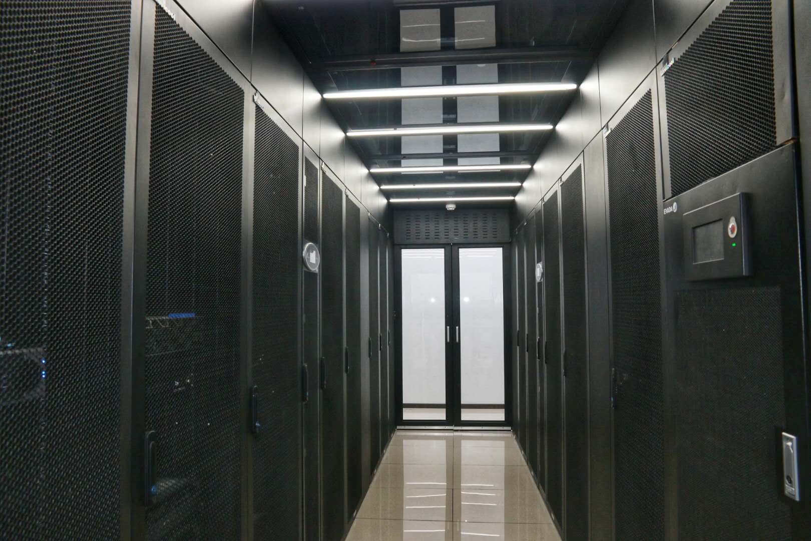 智能计算实验中心的是一个标准的微模块中心机房,包含冷通道模块化机柜、恒温恒湿模块化精密空调、UPS电源及配电系统、气体消防系统、环境监测系统等,该机房搭载了JAV在线 的人工智能与大数据计算平台,由8个大型计算节点及40多块英伟达GPU卡及配套的计算平台所组成,总算力达到70万亿次/秒,为师生提供各种智能计算服务。