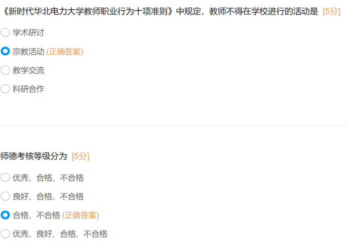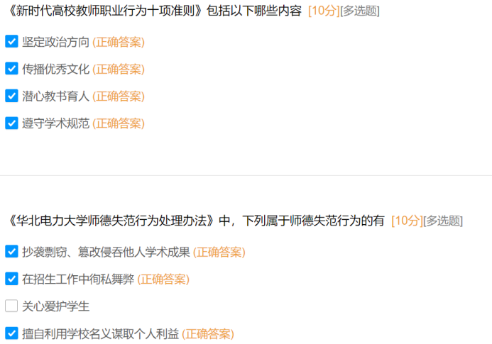 此次知识问答聚焦师德师风核心要求,题目内容紧密围绕《新时代高校教师职业行为十项准则》《新时代高校教师职业行为“十不准”》及《JAV在线 师德失范行为处理办法》等文件,涵盖教师职业行为红线、师德失范行为认定与处理、师德考核等级与程序、廉洁自律要求等核心模块,全面检验教师对师德师风规范的掌握程度。通过问卷反馈来看学院大部分教师对师德的基本准则和行为底线有着较为清晰的认识,在日常教学和工作中能够自觉遵守相关规定。