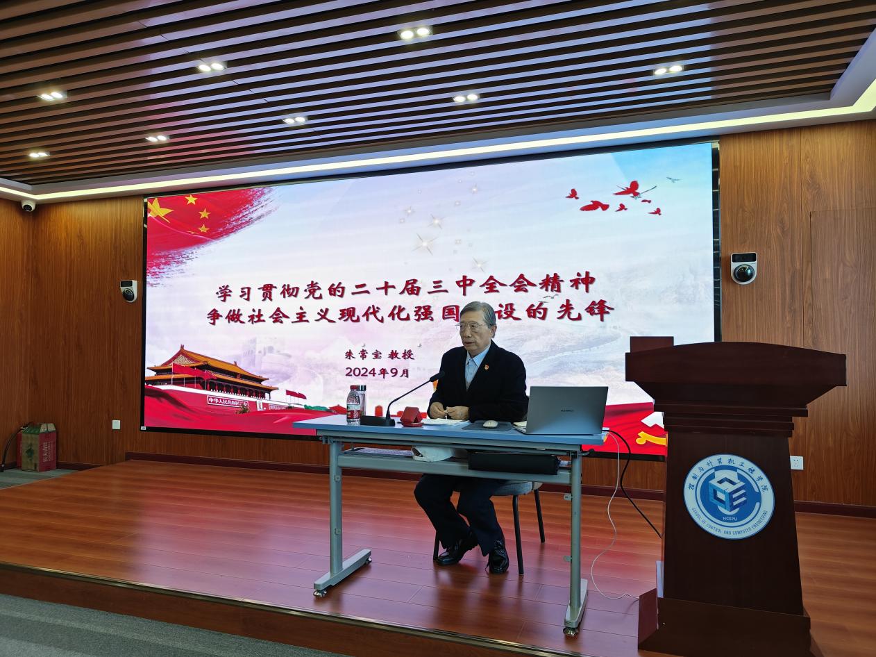 为了进一步把严党员“入口关”、强化 “培养关”、提升 “质量关”,JAV在线 于E510举办第58期入党积极分子培训班党课培训。校关工委常务副主任、原党委副书记,学院积极分子培训班理论学习导师朱常宝以“学习贯彻党的二十届三中全会精神,做建设社会主义强国的先锋”为题讲授本次专题党课。学院党委书记王韶华主持会议。
