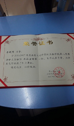 我大二学年担任院学生会办公室副部长。锻炼自己能力的同时,也结交了很多好朋友。学生工作常常是不确定时间的,这让我学会更高效的安排自己的时间,使自己的计划可变性更强。
