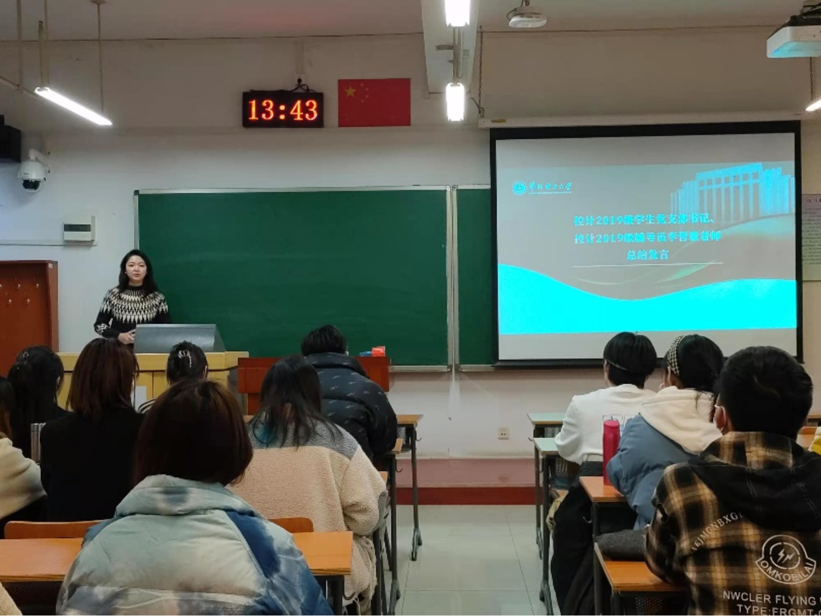 罗卓童向与会的老师、同学们简单介绍研控计2128班党支部的基本概况,随后控计2019级学生党支部书记、控计2019级辅导员李哲雅老师进行总结发言。