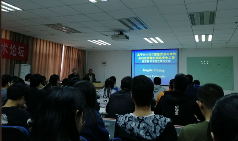 2018年4月23日14时30分,JAV在线 第250期“前沿&创新”学术论坛于主E1009成功举办。本次论坛主讲嘉宾为日本埼玉大学研究生院计算机科学的程京德教授,讲座主题是“基于ISO/IEC信息安全标准的自动化智能化信息安全工程”,讲座由JAV在线 研究生会外联部承办。