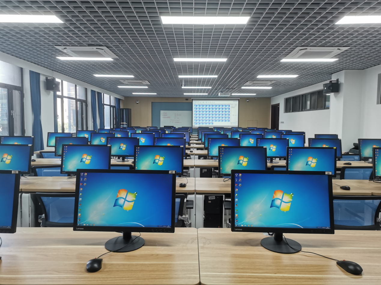 软件工程实验室位于主楼E座4层,共有4个房间,面积约600平米,能同时提供288名学生上机实践。实验室配置有云桌面教学管理软件以及多媒体环境,能根据课程安排灵活配置不同的实验环境。