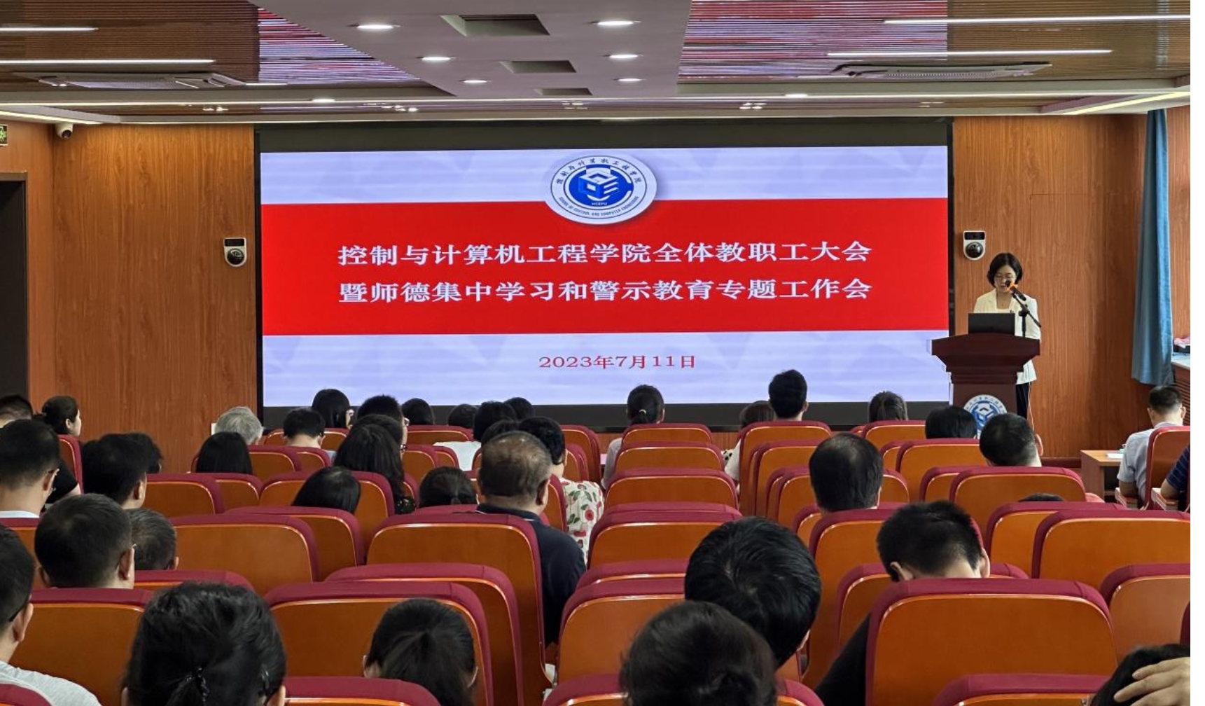 召开全体教职工大会暨师德集中学习和警示教育专题工作会。学院班子成员和全体教职工参加会议,会议由党委书记王韶华主持。