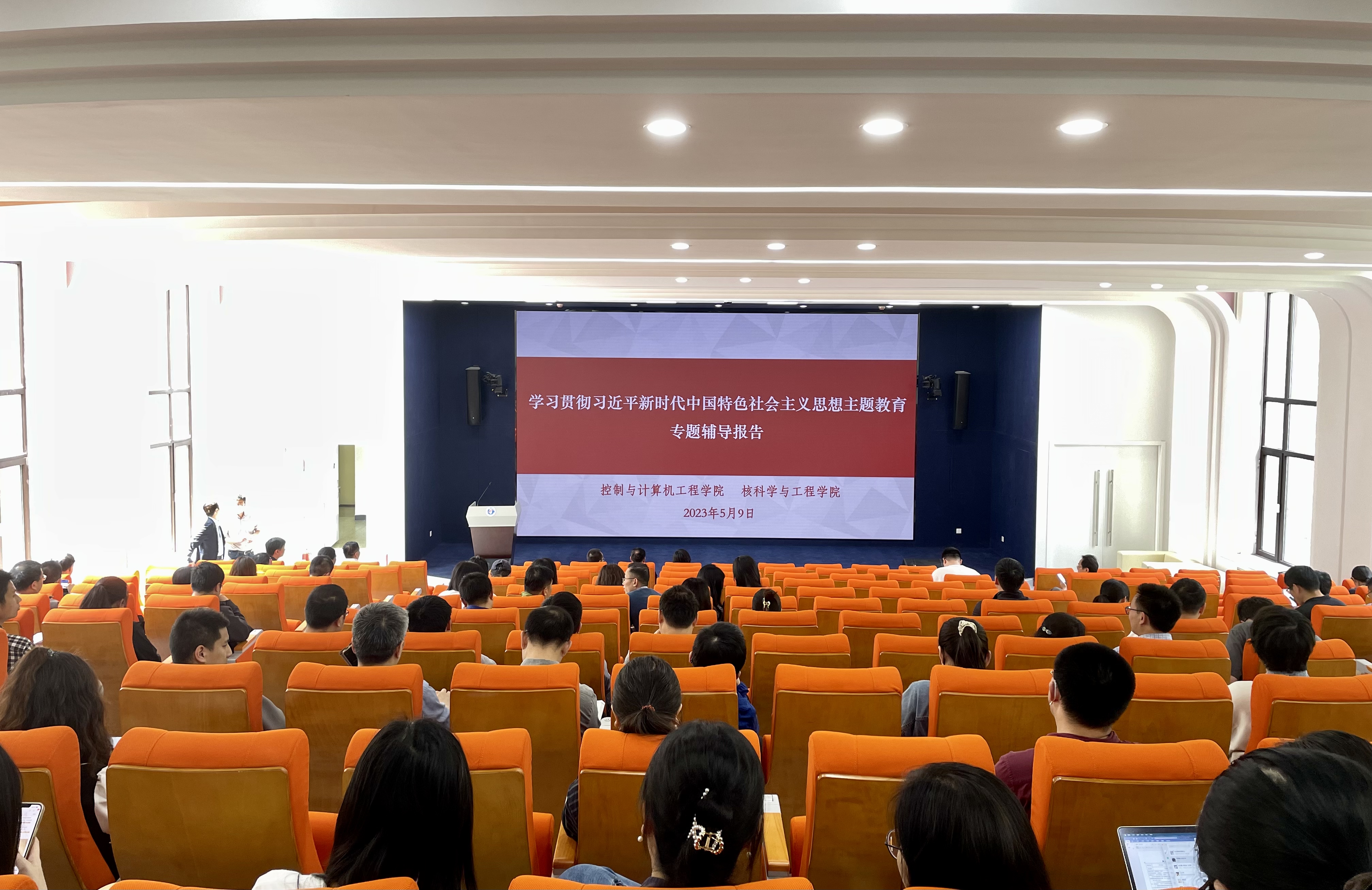 党委、核科学与工程学院党委联合开展学习贯彻习近平新时代中国特色社会主义思想主题教育集体学习。会议邀请中国中铁党校副校长李庆安教授作“赶考产生的历史背景和时代价值”专题辅导报告。两学院党委委员、教师党员、高层次人才、民主党派、学生代表参加报告会。