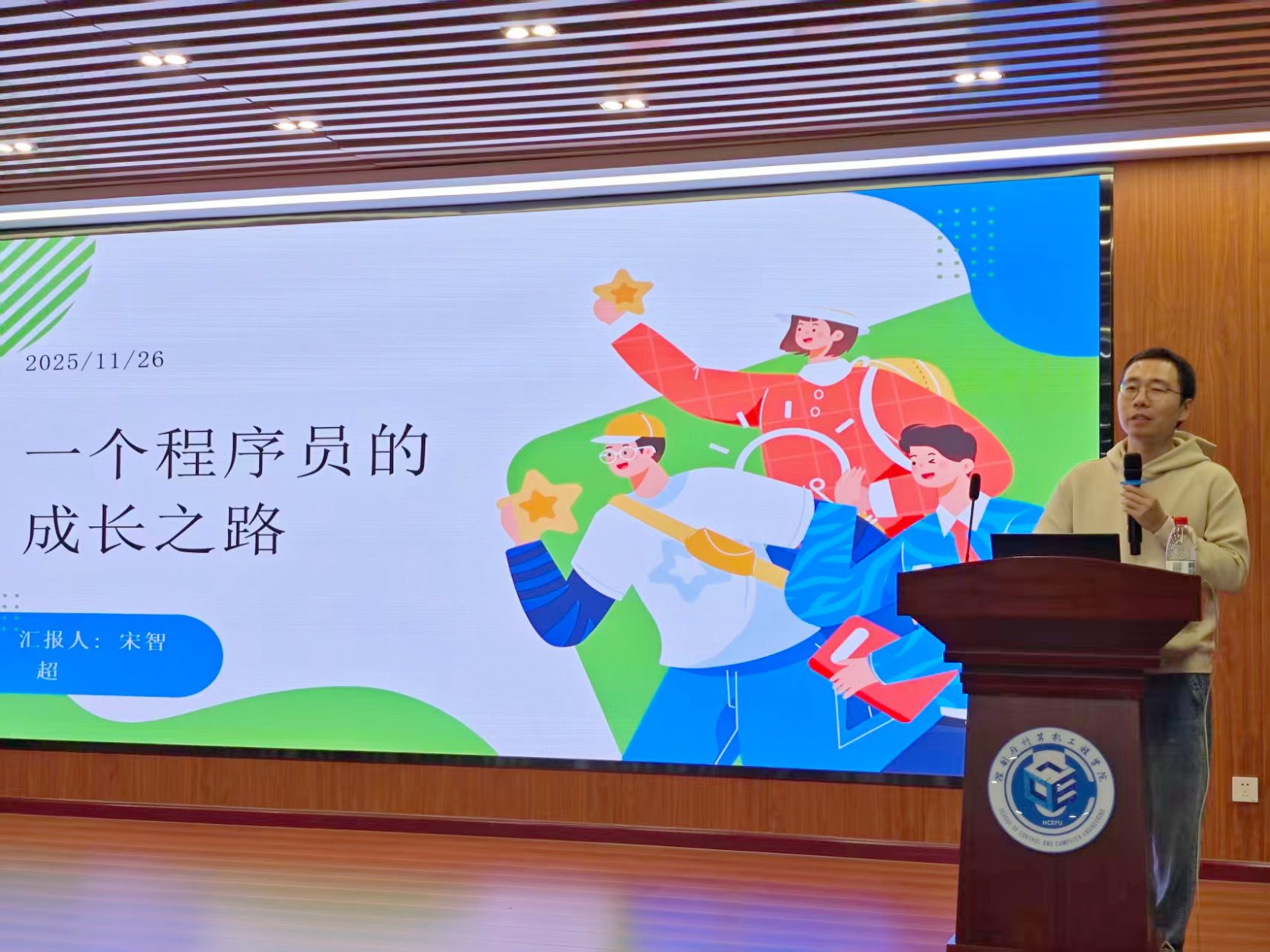 11月26日晚间,JAV在线 举办“E+讲堂——校友说”活动,邀请我校2017届校友,现任北京抖音信息服务有限公司专家工程师宋智超与在校学生面对面深入交流。宋智超以《一个程序员的成长之路》为题,结合自身多年行业经历,分享一路走来的收获与内心感悟。学院党委副书记王璐及学院学生代表参加了此次活动。