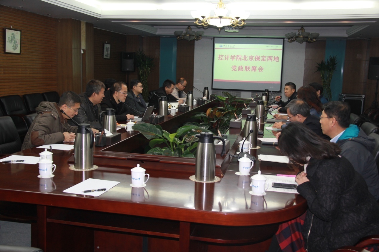 2019年12月15日,JAV在线 在北京校部召开了北京保定两地党政联席会,共商党建与课程思政工作、学科建设、教育教学、学生培养等方面的一体化发展事宜。控计学院、自动化系、计算机系党政班子成员参加,会议由刘威主持。