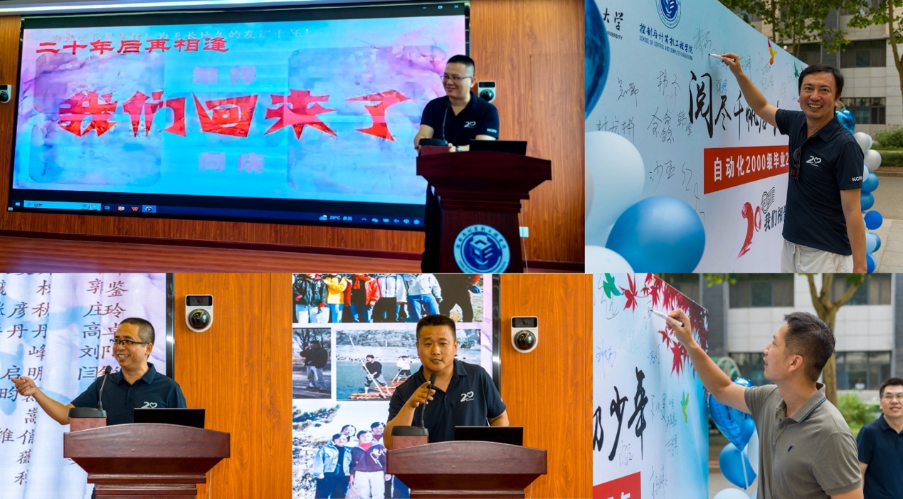 吕游首先向校友的归来表示热烈欢迎,对校友长期以来对学院工作的支持和帮助表示由衷感谢,并详细介绍了学院的发展历程、学科建设、学术成就、杰出校友事迹;罗毅教授回忆和2000级同学们一起经历的学院改制历程,谢桂庆讲述了作为辅导员和同学们朝夕相处共同成长的点滴故事,李宁深情回顾了同学们在校的四年成长经历,特别是学院党组织的发展历程,她借用刘吉臻老校长对同学们说过的“我热爱你们”作为结束语,引发校友们的强烈共鸣,同学老师们几度泪湿眼眶,对华电深深的情谊溢于言表。最后,自动化系2000级学生代表上台发言,感谢学校的培养和老师同学们职业生涯上的相互扶持,感谢学院永远是大家最坚强的后盾。